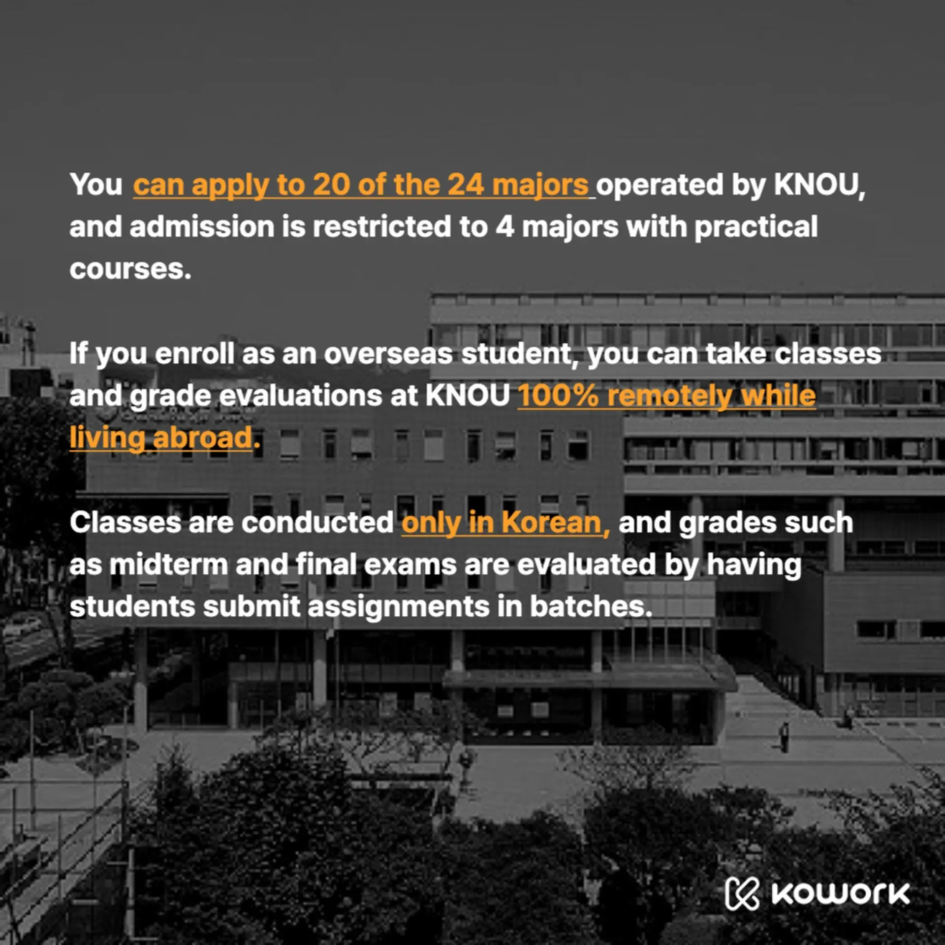 As students are enrolled in Korean universities, classes at Korea Open University are conducted only in Korean, and grades such as mid-term and final exams are submitted as assignments.